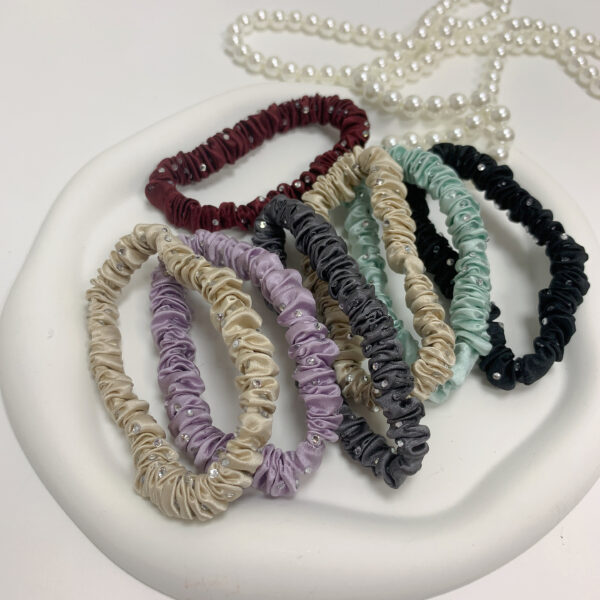 - Skinny Hair Scrunchies is one of our main businesses. It is shinny, soft, high elastic and elegant!